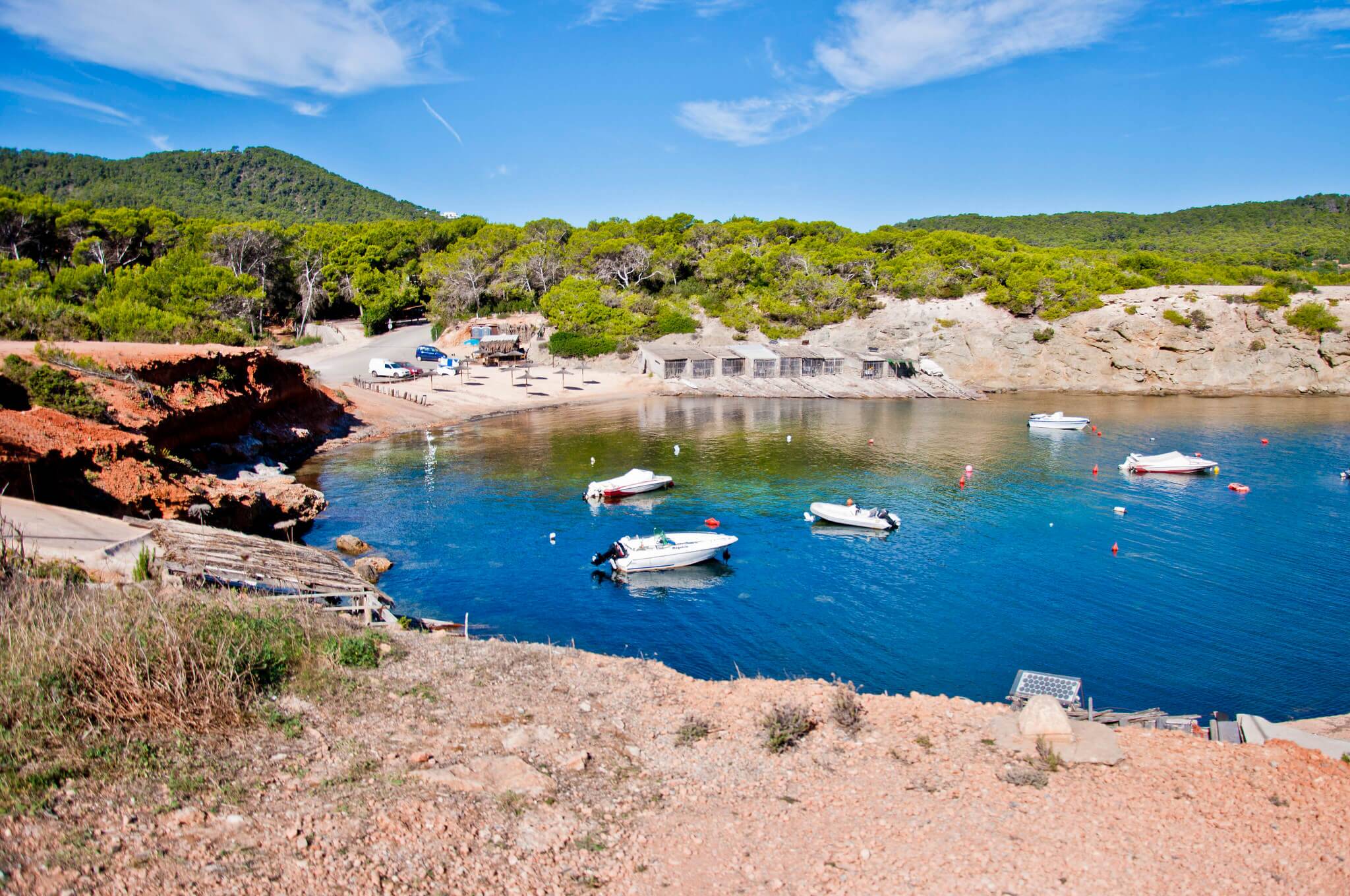Pou des Lleo is a beautiful beach located on the northern coast of the island of Ibiza in Spain. It is a quiet and unspoiled beach, surrounded by stunning natural scenery.