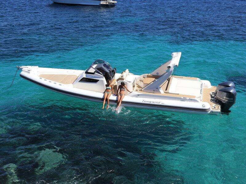 The Capelli 40 is a luxury semi-rigid boat designed to offer a premium cruising experience in Ibiza and Formentera. With a length of 12.2 meters and a capacity of up to 12 passengers, it combines power, stability and comfort thanks to its twin 350 hp engines. Its elegant design features spacious sunbathing areas, ergonomic seating, a picnic table, a freshwater shower, a premium sound system and a practical swim platform, ideal for enjoying the sea in total comfort. Perfect for day trips, the Capelli Tempest 40 guarantees speed, safety and a high level of enjoyment on every journey.